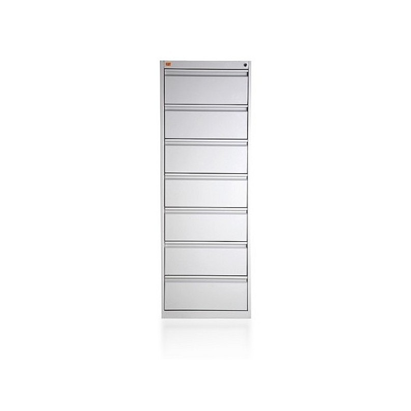 \nSiedmioszufladowa szafa przystosowana do przechowywania kopert formatu B-5 w poziomie. Szuflada posiada przegrodę umożliwiającą ułożenie dwóch rzędów kopert. Wykonana jest z blachy czarnej o grubości 0,6mm- 2,0 mm, malowana farbami proszkowymi (epoksydowo-poliestrowymi) w kolorze RAL 7035. Szuflady przesuwają się po prowadnicach teleskopowych z blokadą zabezpieczającą przed wypadnięciem. Całość zamykana jednym centralnym zamkiem. Maksymalne obciążenie prowadnic szuflady: 80kg. Szafa posiada blokadę pozwalająca na wysunięcie tylko jednej szuflady, co zachowuje jej stabilność.