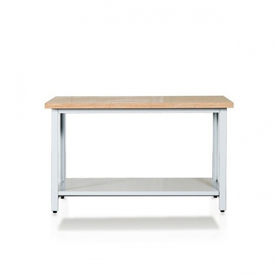 \nStół wykonany jest z profili metalowych z blachy o grubości 2 mm, wyposażony w blat ze sklejki o grubości 40 mm. Możliwość wyposażenia w regulowane stopki. Półka jest z blachy #1 mm, wzmocniona dodatkowo profilem. Malowany jest farbami proszkowymi (epoksydowo-poliestrowymi) w kolorze RAL7035.