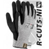 Rękawice antyprzecięciowe z mieszanki włókien HPPE oraz włókna szklanego wyróżniają się elastycznością i odpornością na rozciąganie. Są niezwykle komfortowe w noszeniu oraz skutecznie chronią dłoń przed urazami w kontakcie z ostrymi przedmiotami. Powłoka ze spienionej gumy kauczukowej gwarantuje doskonałą przyczepność, co znacznie ułatwia przenoszenie ciężkich elementów. Świetnie sprawują się również w kontakcie ze śliskimi i zaolejonymi powierzchniami. Zabezpieczają dłonie przed uszkodzeniem oraz zabrudzeniem. Bardzo dobrze przylegają i nie zsuwają się. Posiadają zwężany mankiet zakończony ściągaczem, dzięki czemu idealnie dopasowują się do obwodu nadgarstka.