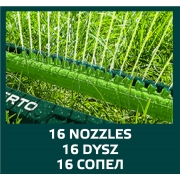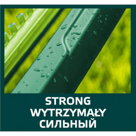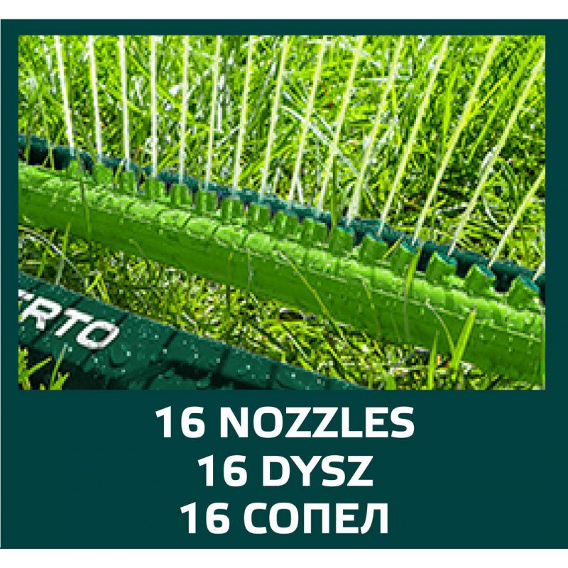 Zraszacz oscylacyjny, powierzchnia zraszania do 336 m2, 16 dyszy zraszających, łatwa regulacja zakresu zraszania, igła do udrażniania dysz, trwałe tworzywo odporne na zniszczenie