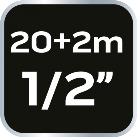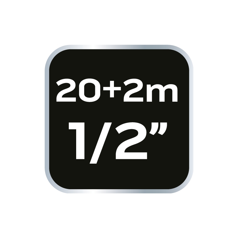 Wąz z automatycznym zwijaczem 1/2", 20 m + 2m, ciśnienie robocze 10 bar, obudowa PP, wąż PVC, zakres temperatur pracy: -5 do +55°C, waga 11 kg, zestaw zawierający automatyczny zwijacz wraz ze zraszaczem, przyłączem do kranu oraz złączkami, system automatycznego zwijania z mechanizmem hamującym, możliwość zablokowania węża na dowolnej długości, system prowadnic umożliwiający zwijanie bez zagięć, uchwyt montażowy z zakresem ruchu 180 st., gumowany uchwyt do przenoszenia, dwuwarstwowa obudowa, otwierana górna pokrywa, aluminiowy trzpień do mocowania na uchwycie