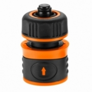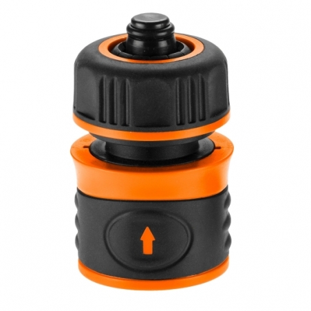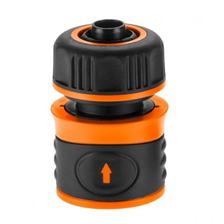 Zestaw 1/2" ze zraszaczem prostym, złaczkami i przyłaczem do kranu, 4 elementowy zestaw, elementy z miękkiej gumy TPR, zraszacz z możliwością regulacji siły strumienia od mocnego strumienia punktowego do mgiełki, 2 złączki ½” przelotowa i STOP, przyłącze od kranu ½” – ¾”