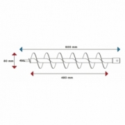 Świder glebowy, średnica 80 mm, długość 600 mm, uchwyt M14, do mieszarki 58G084, stalowa konstrukcja, podwójna płytka, pojedyncza spirala.