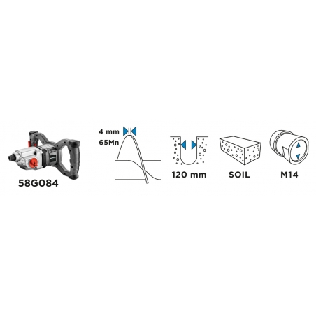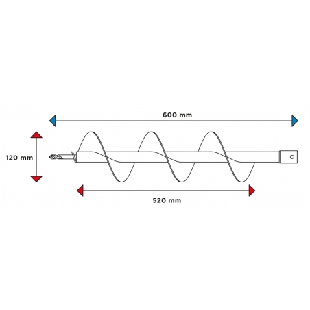 Świder glebowy, średnica 120 mm, długość 600 mm, uchwyt M14, do mieszarki 58G084, stalowa konstrukcja, podwójna płytka, pojedyncza spirala.