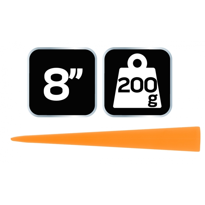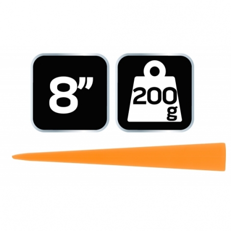 Klin do rozłupywania drewna 8", 200g. Wykonany z tworzywa sztucznego PP, wyprofilowana powierzchania, zintegrowana zawieszka