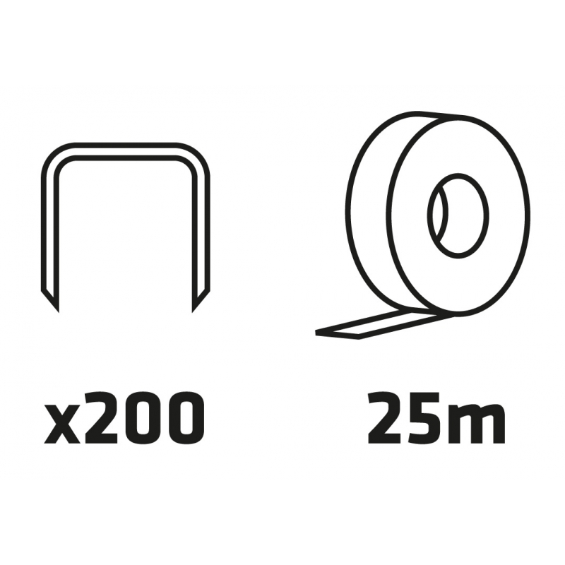 Urządzenie do podwiązywania roślin, zestaw 25 m taśmy + zszywki, wymiary urządzenia: 31 x 6 x 33 cm, wykonany ze stali A3 + ABS, waga 650 g, kompatybilny z VERTO 15G456