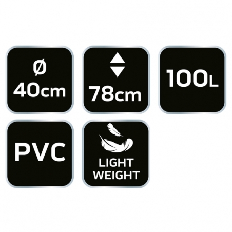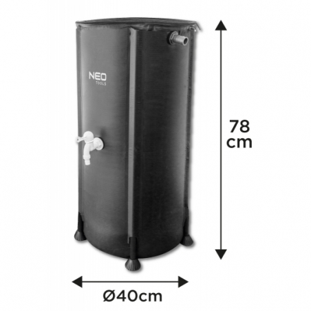 Składany pojemnik na deszczówkę, 100 L, PVC odporne na promieniowanie UV i rozdarcie; kran, dolny zawór 3/4"; suwak, sitko zapobiegające wpadaniu do pojemnika zanieczyszczeń takich jak liście; średnica 40 cm, wysokość 78 cm