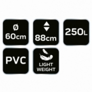 Składany pojemnik na deszczówkę, 250 L, PVC odporne na promieniowanie UV i rozdarcie; kran, dolny zawór 3/4"; suwak, sitko zapobiegające wpadaniu do pojemnika zanieczyszczeń takich jak liście; średnica 60 cm, wysokość 88 cm