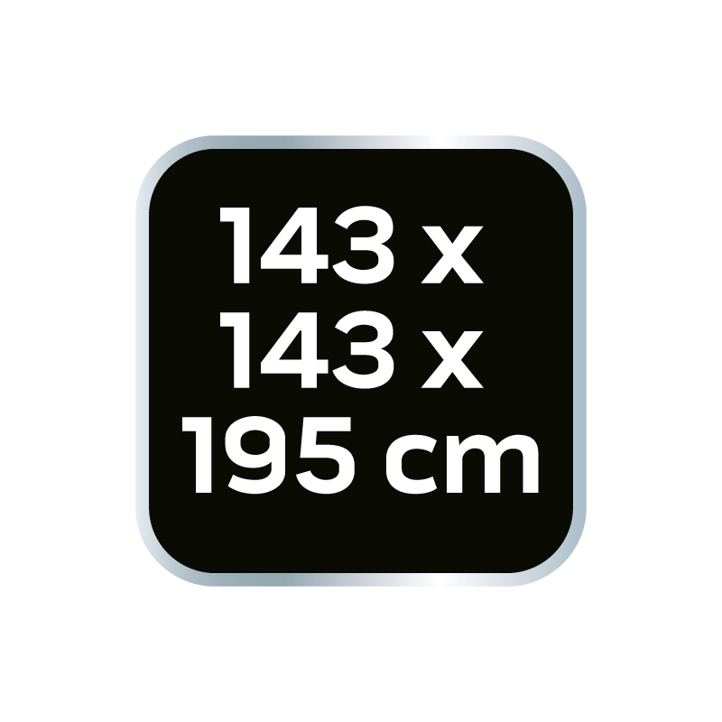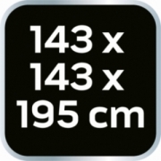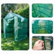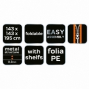 Szklarnia 143 x 143 x 195 cm, folia PE, składana, metalowa konstrukcja malowana proszkowo; łatwy montaż, zamykana na zamek błyskawiczny, możliwość podwinięcia frontu szklarni, otwór frontowy o wymiarach 75 x 152 cm, 4 półki