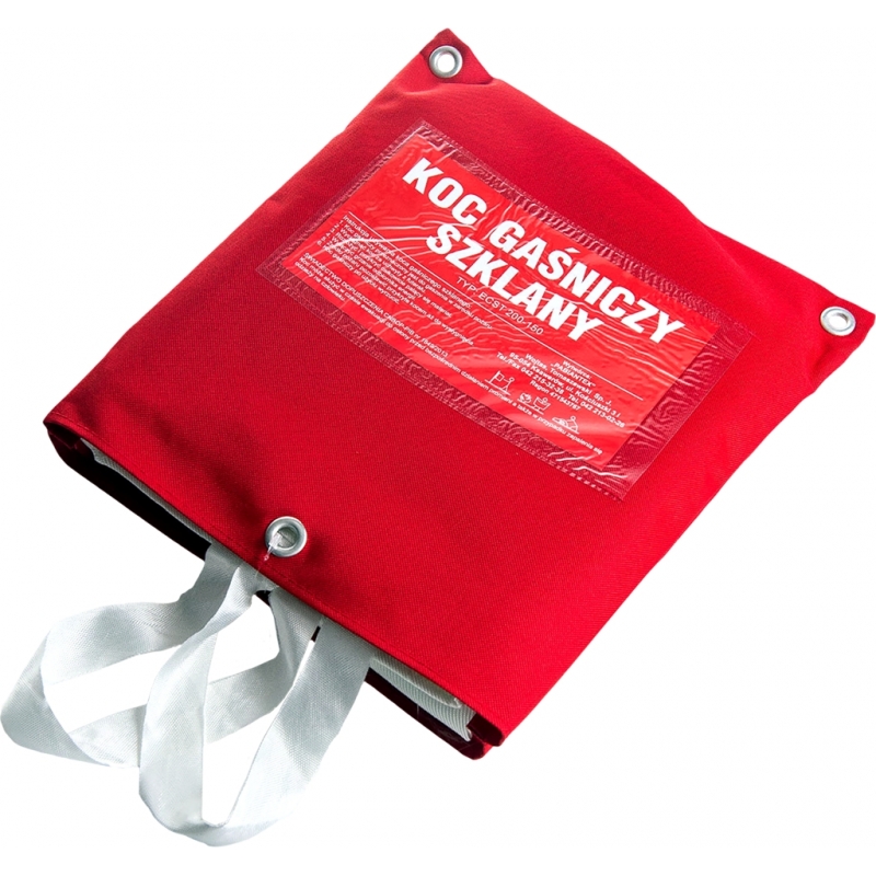 Koc gaśniczy. - wykonany z wytrzymałego materiału – włókna szklanego - przygotowany do zamontowania na ścianie - przeznaczony do tłumienia ognia w zarodku - gaszenie ognia polega na odcięciu dopływu powietrza do palącego się przedmiotu (materiału) - właściwości izolacyjne koca chronią osobę gasząca przed wysoka temperaturą - podczas gaszenia koc należy uchwycić zgodnie z instrukcją zasłaniając dłonie i całe ciało przed wysoką temperaturą ognia - wymiary 1,2x1,8 m - posiada Świadectwo Dopuszczenia CNBOP - spełnia wymagania normy PN-EN1869