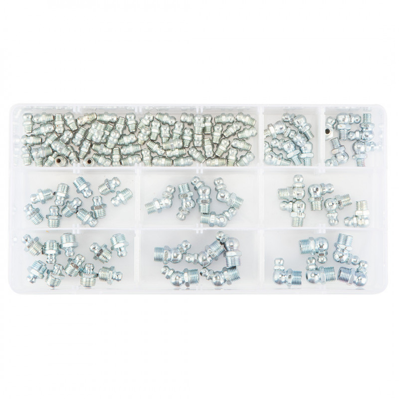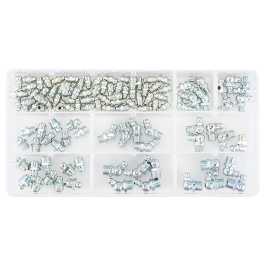 Smarowniczki: 60 x (M6x1), 5 x (M6x1x45°), 5 x (M6x1x90°), 10 x (M8x1), 5 x (M8x1x45°), 5 x (M8x1x90°), 10 x (M10x1), 5 x (M10x1x45°), 5 x (M10x1x90°)