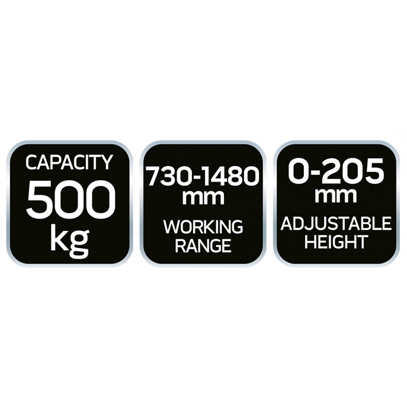 Wieszak na silnik, udźwig 500 kg, rozstaw podpór 730 - 1 480 mm, zakres podnoszenia 0 - 205 mm, waga 20.5 kg