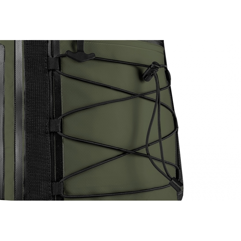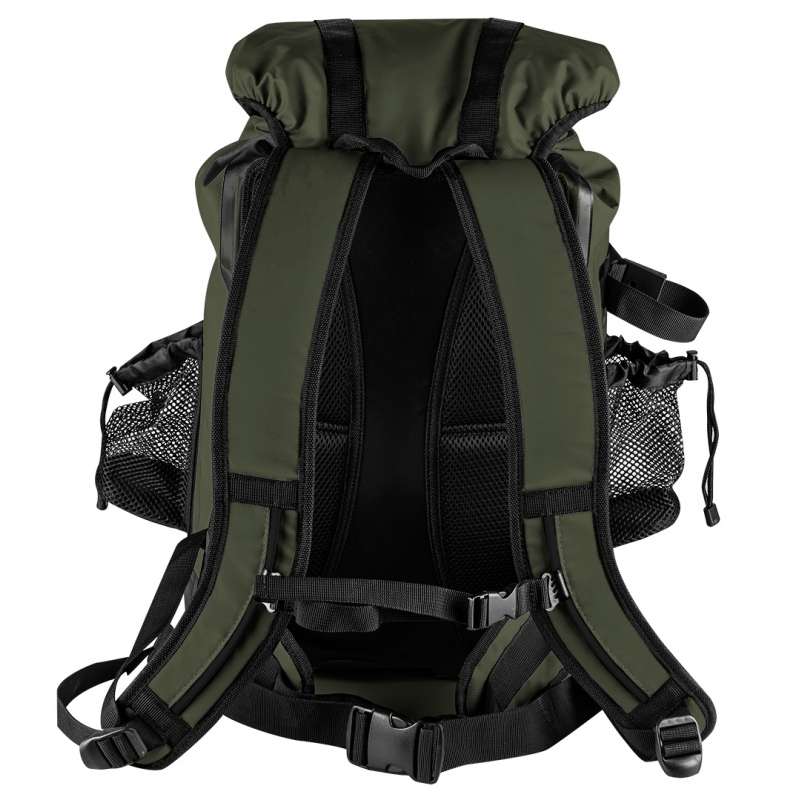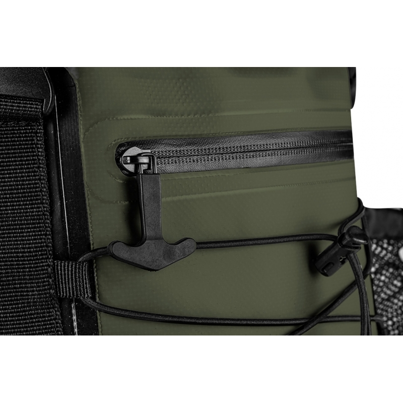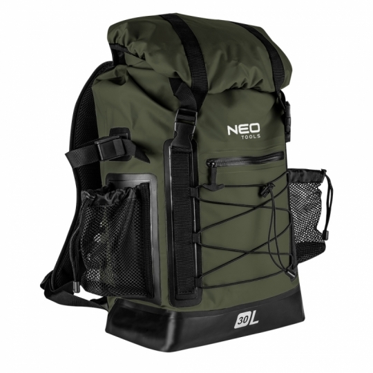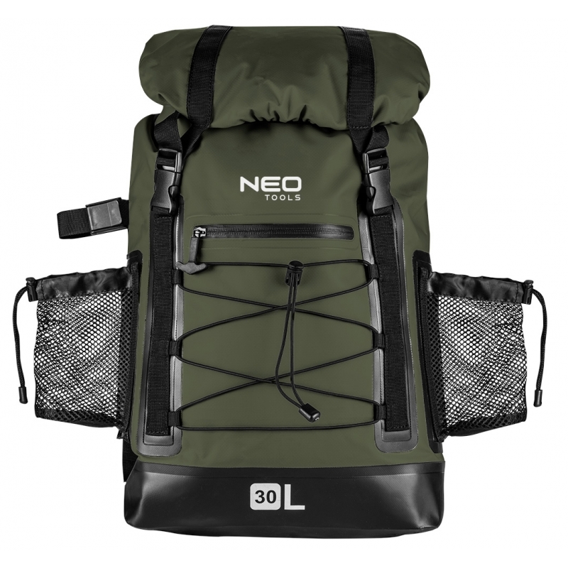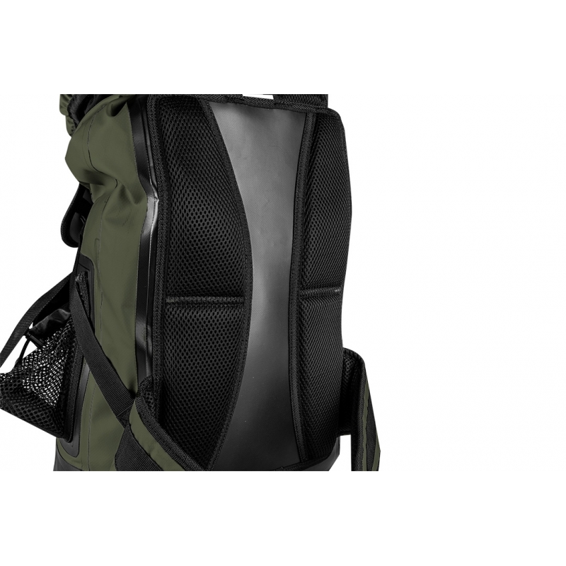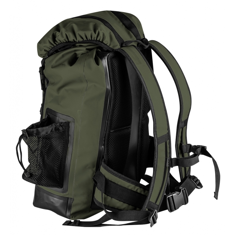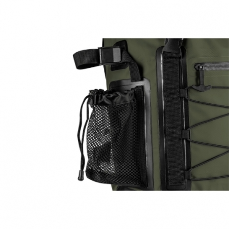 Plecak wodoodporny materiał 600D PVC termoplastyczny poliuretan, pojemność 30L, rozmiar 32x63x18 cm, 1 kieszeń zewnętrzna, regulowane pasy ramienne, pas piersiowy, poduszki na tylniej części, boczna siatkowa kieszeń
