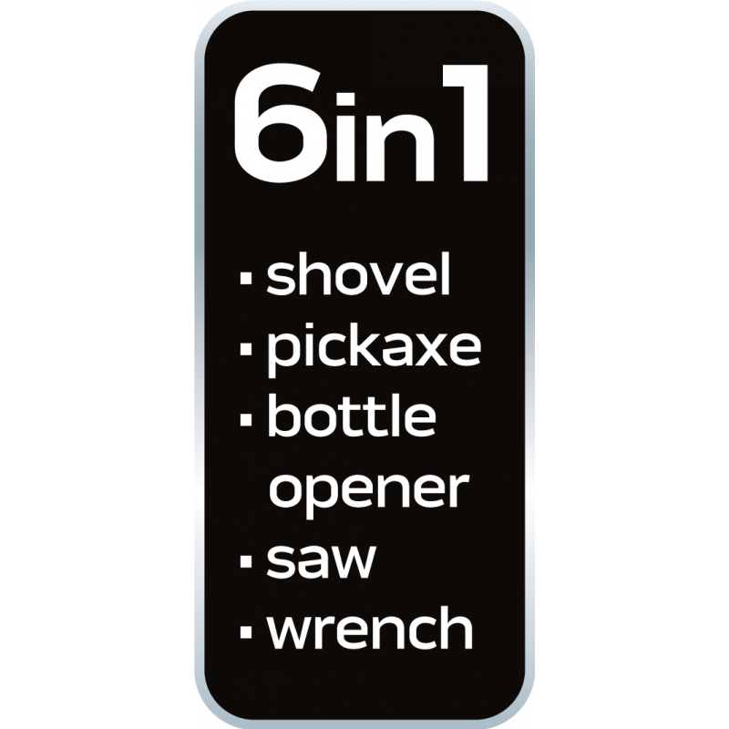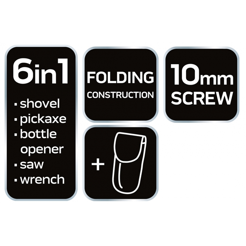Saperka składana pięć funkcji w jednym, szpadel, kilof, otwieracz butelek, piła, klucz nasadowy 10mm, pouch do przenoszenia i składowania