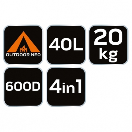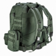Plecak survivalowy poliester 600D, pojemna komora główna, uchwyt do przenoszenia, pojemność 40L, regulowane pasy ramienne, regulowany pas piersiowy, regulowany pas biodrowy, ściągacze boczne i górne, 4 w 1 plecak, dwie odpinane małe torby boczne, jedna średnia odpinana torba, dodatkowy pas naramienny do średniej torby