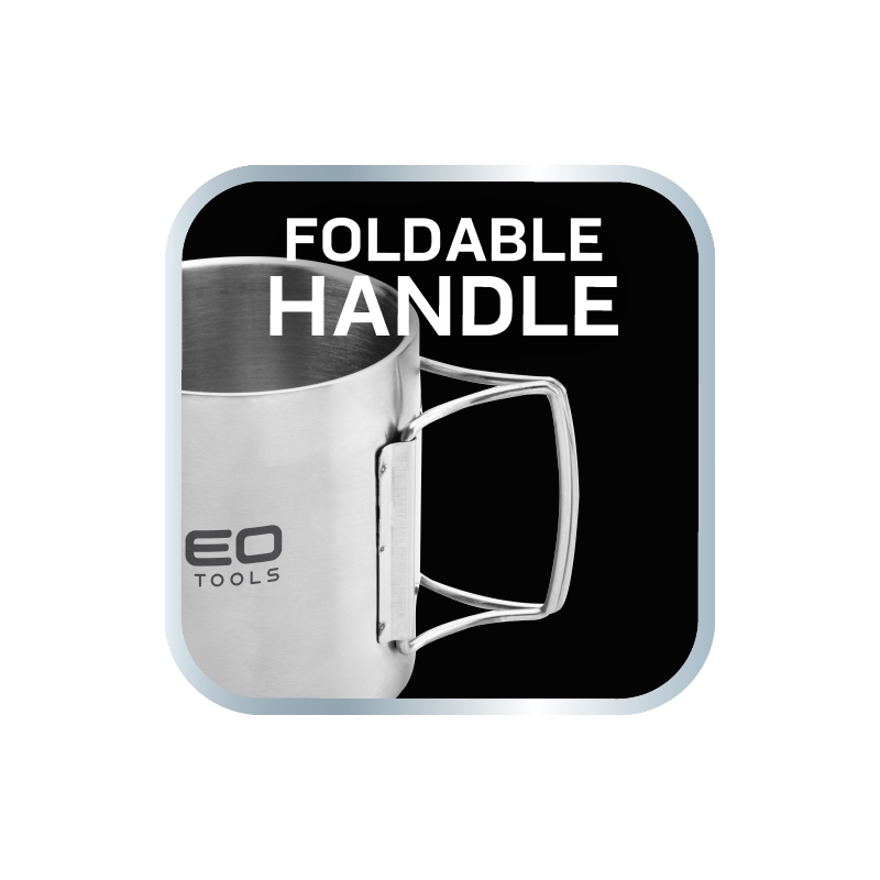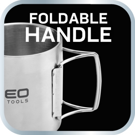 Kubek turystyczny pojemność 320ml, wymiar średnica 80mm, wysokość 92mm, waga 150g, składane uchwyty, etui do przenoszenia, materiał stal nierdzewna, podwójne ścianki