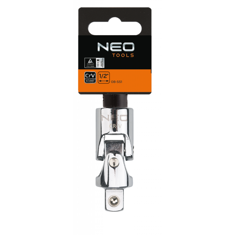 Przegub uniwersalny 1/2", stal CrV, DIN3123, certyfikat TÜV M+T