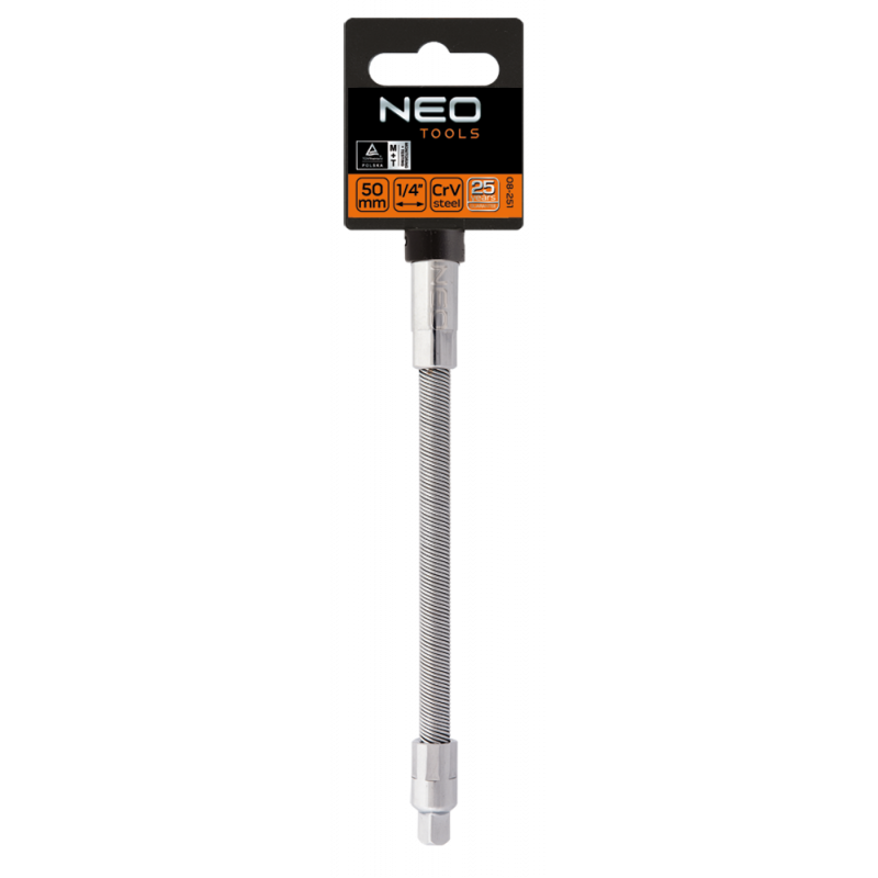 Przedłużka elastyczna 1/4", 140 mm, stal CrV, moment maksymalny 5 Nm, certyfikat TÜV M+T, 25 lat gwarancji