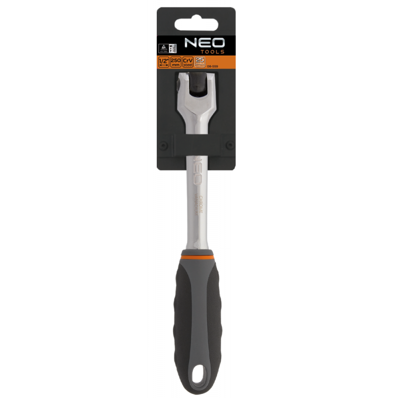 Rękojeść z przegubem 1/2", 250 mm, stal CrV, dwumateriałowy uchwyt, certyfikat TÜV M+T, 25 lat gwarancji