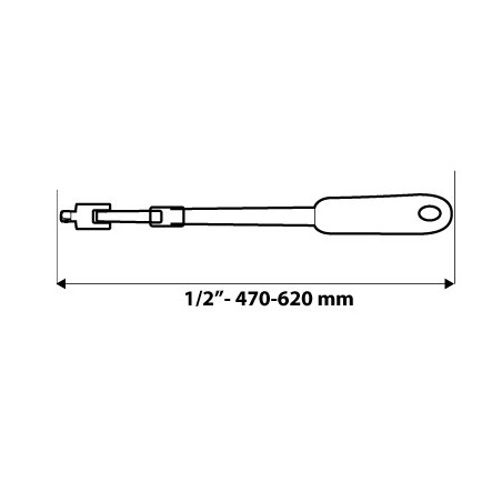 Rękojeść z przegubem teleskopowa 1/2", 470- 620 mm, stal CrV, dwumateriałowy uchwyt, certyfikat TÜV M+T, 25 lat gwarancji