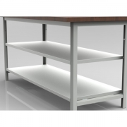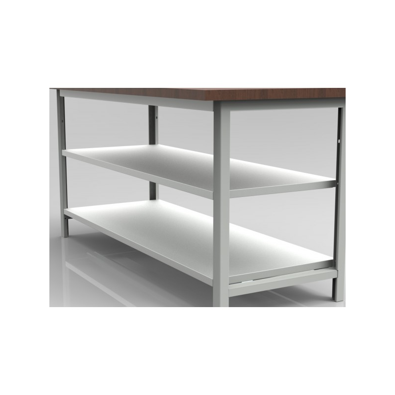 \nPółka wykonana jest z blachy czarnej o grubości 1mm. Wzmocniona dodatkowym profilem. Malowana farbami proszkowymi (epoksydowo-poliestrowymi) w kolorze RAL 7035 (jasny popiel)