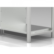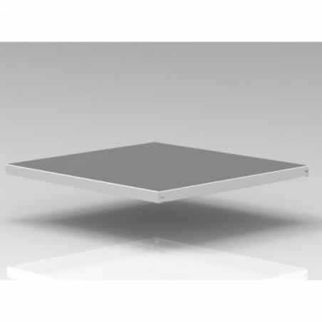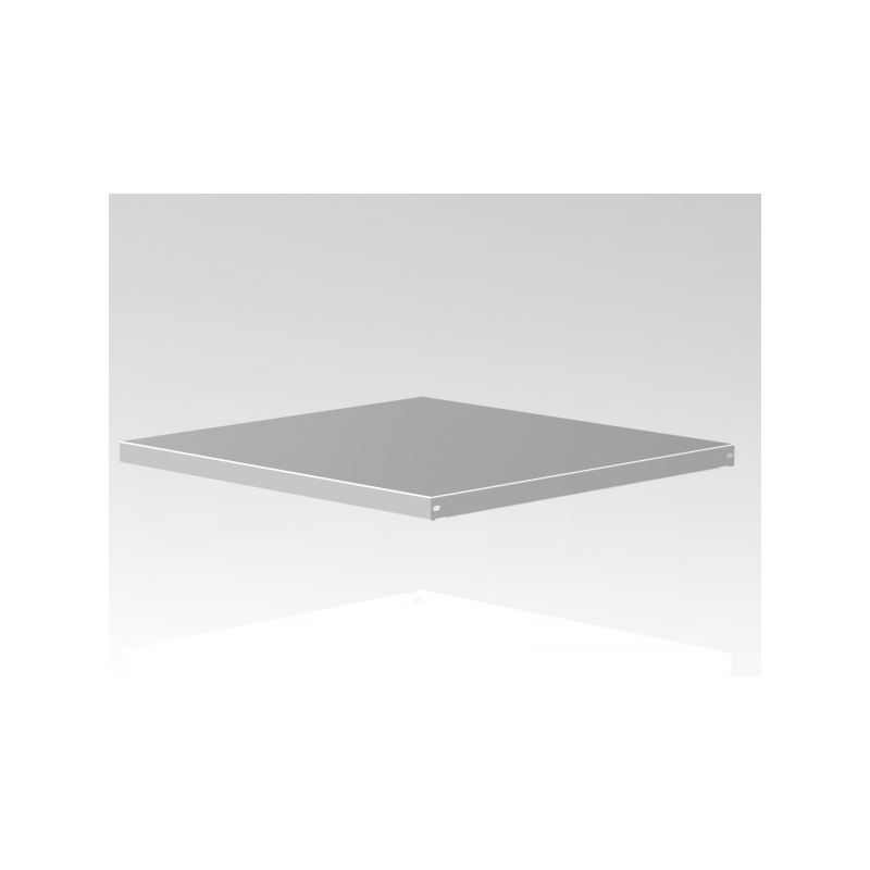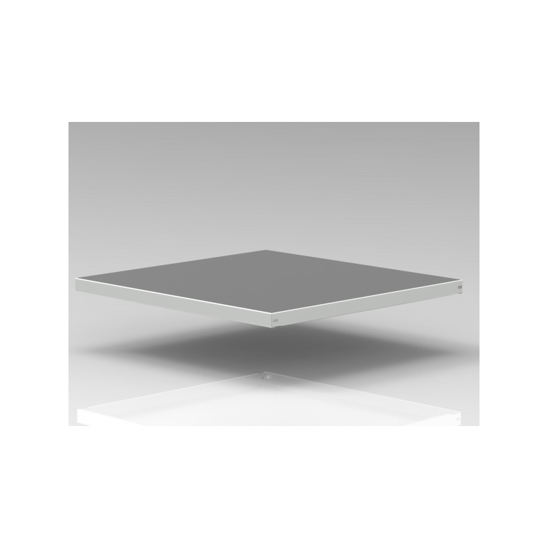 Półka wykonana jest z blachy czarnej o grubości 1mm. Wzmocniona dodatkowym profilem. Malowana farbami proszkowymi (epoksydowo-poliestrowymi) w kolorze RAL 7035 (jasny popiel)
