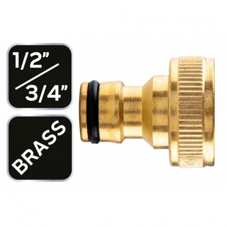 Przyłacze do kranu 1/2"- 3/4", mosiężne, wykonane z wysokiej jakości mosiądzu gwarantują trwałość i wytrzymałość, możliwość dopasowania do średnicy kranu lub używania na kranach o różnych średnicach- do wyboru dwie średnice w każdym przyłączu