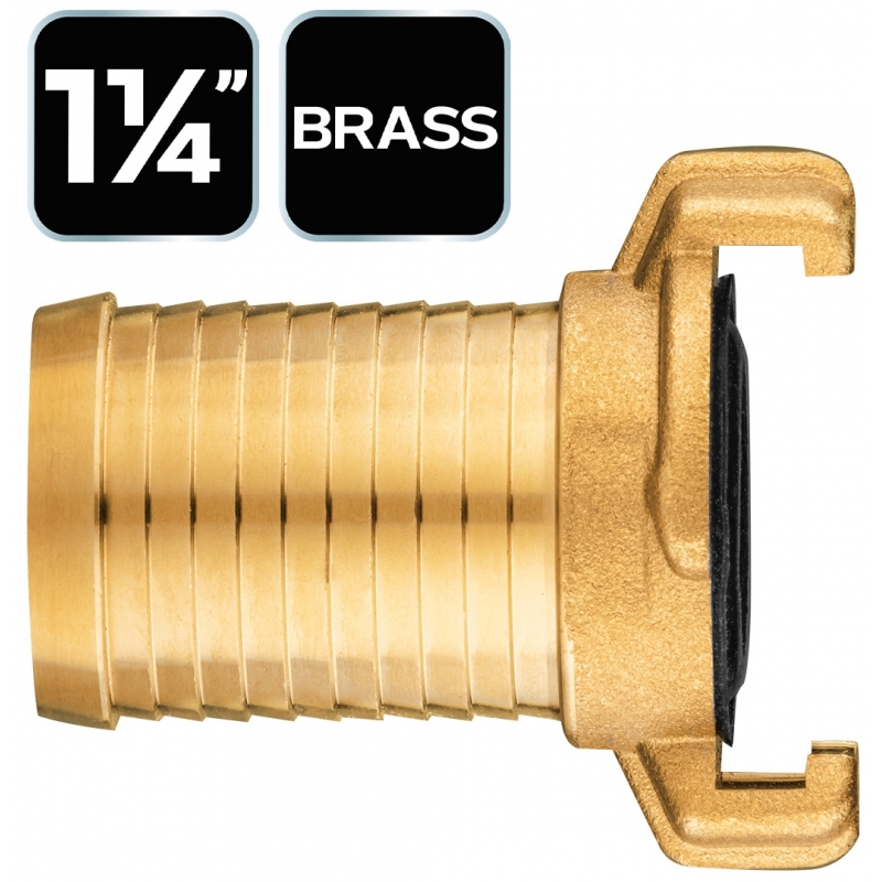Szybkozłącze mosiężne na wąż, 1 1/4", poprawne zaciśnięcie węza na złaczu przy pomocy opasek ślimakowych