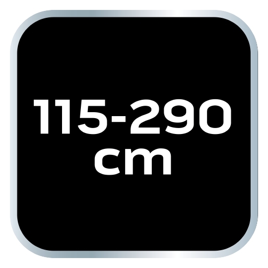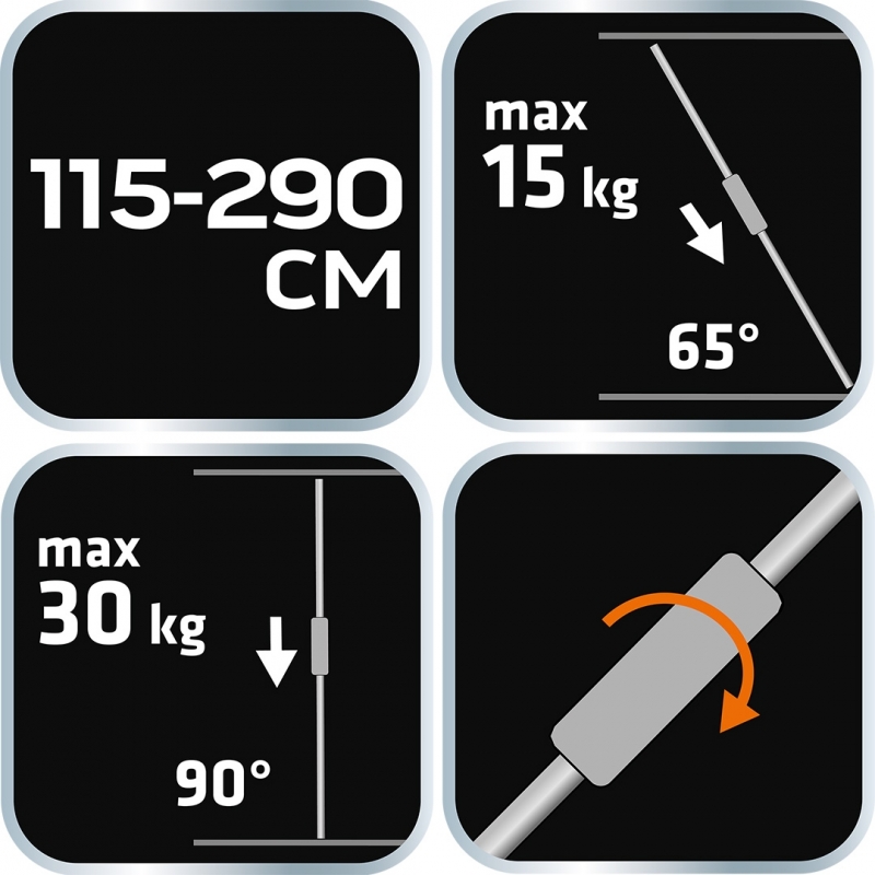 Podpora teleskopowa, zakres 115-290 cm, gumowe stopki, blokada bezpieczeństwa, system szybkiego rozsuwania