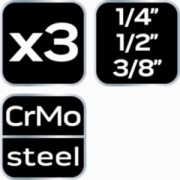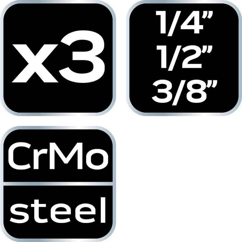 Zestaw przegubów udarowych 3 szt., rozmiary: 1/4", 3/8", 1/2", stal Cr-Mo