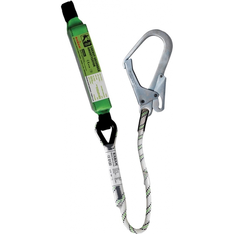 - po jednej stronie pochłaniacz energii zakończony pętlą, druga strona wyposażona w stalowy hak oczkowy do rusztowań