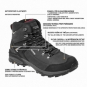 Wytrzymałe trzewiki odpowiednie do zajęć na świeżym powietrzu przez cały rok. Obuwie posiada wodoodporną membranę REGI-TEX, która chroni stopy przed wilgocią. W tylnej części wzmocnienie z TPU, przód buta posiada dodatkową gumową osłonę.  Obuwie certyfikowane zgodnie z normą EN ISO 20347:2012 O2 SRA WR.