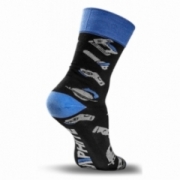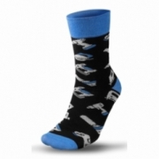 Skarpety kolorowe GRAPHTIE, Skład materiałowy: 80% bawełna, 18% poliester, 2% elastan, kompresyjny ściągacz nie powodujący ucisków, produkt zgodny z certyfikatem OEKO-TEX standard 100, oddychająca i odprowadzająca wilgoć, wzory elektronarzędzi nawiązujące do marki GRAPHTIE, unikalny projekt własny, rozmiar 43-46