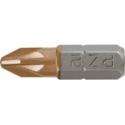 Końcówki wkrętakowe PZ2 x 25 mm, 1/4", powleczone azotkiem tytanu, stal S2, zestaw 2 szt.