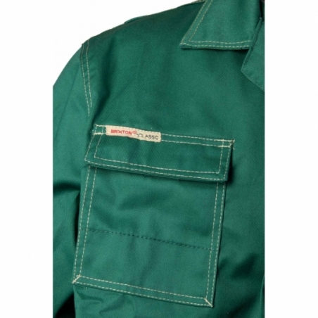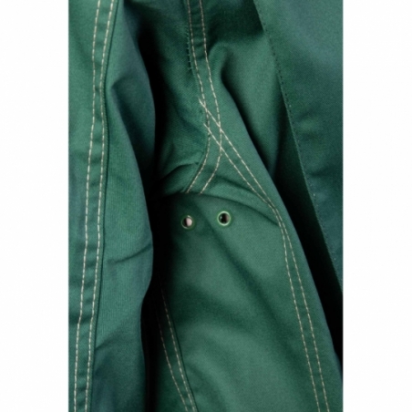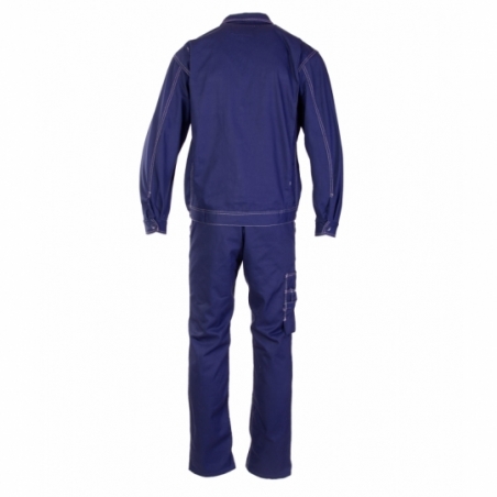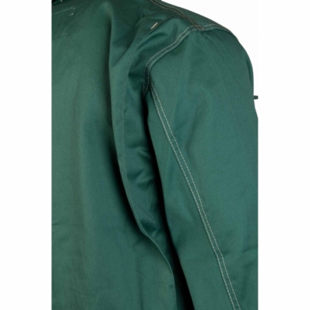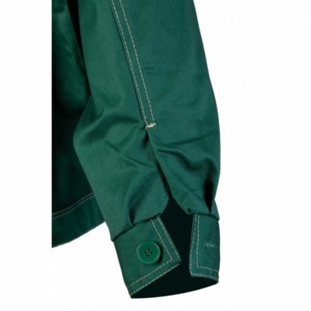 .Bluza: zapinana na guziki, kryte listwą, posiada zaszewki na plecach zwiększające swobodę ruchów, duża ilość ryglówek w miejscach szczególnie narażonych na rozprucie, transpiratory powietrza, dwie górne kieszenie w tym jedna kryta listwą, zapinana na rzep, brak kieszeni bocznych, kieszeń na komórkę, mankiety przy rękawach zapinane na guzik, podwójne szwy, szyte widoczną, mocną nicią, na dole bluzy gumka ściągająca, dzięki czemu bluza nie odstaje i zabezpiecza przed wiatrem, wykonana z wysokiej jakości materiału, który zapewnia po wielokrotnym praniu stabilność kolorów i rozmiarów, kieszonka na długopis,