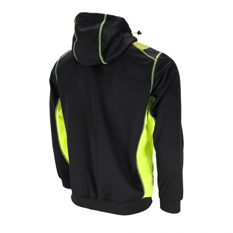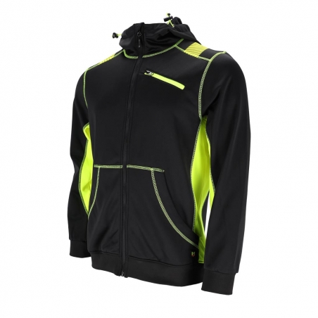 RAW-POL LH‑ORRO to męska bluza ochronna z polarowym wykończeniem od wewnątrz, wyposażona w kaptur, kieszenie na suwak oraz segmentowe pasy odblaskowe zwiększające widoczność. Zapewnia komfort cieplny i wygodę podczas pracy w różnych warunkach.