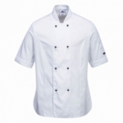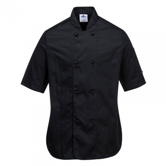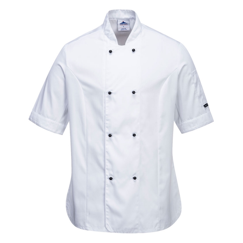- Bardzo stylowa i wygodna bluza kucharska damska Rachel w wersji z krótkimi rękawami. Posiada wykończenie siatkowe MeshAir pod pachami. Rozcięcia z boku i na rękawach.