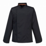 - Bluza kucharska wykorzystująca lekką tkaninę która zapewnia nowoczesną smuklejszą sylwetkę użytkownika dzięki ergonomicznemu dopasowaniu. Posiada podwójne kryte zapięcie z przodu zakładkę na fartuch z tyłu szyi oraz duże panele MeshAir Pro z tyłu i pod pachami gwarantujące doskonałą oddychalność i wentylację.