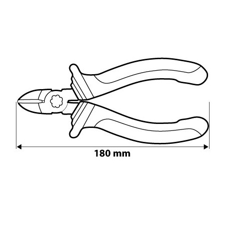 Szczypce boczne 180 mm, twardość powierzchni tnących 55-60 HRc, krawędzie cięcia hartowane indukcyjnie, DIN 5749, uchwyt dwumateriałowy, TÜV