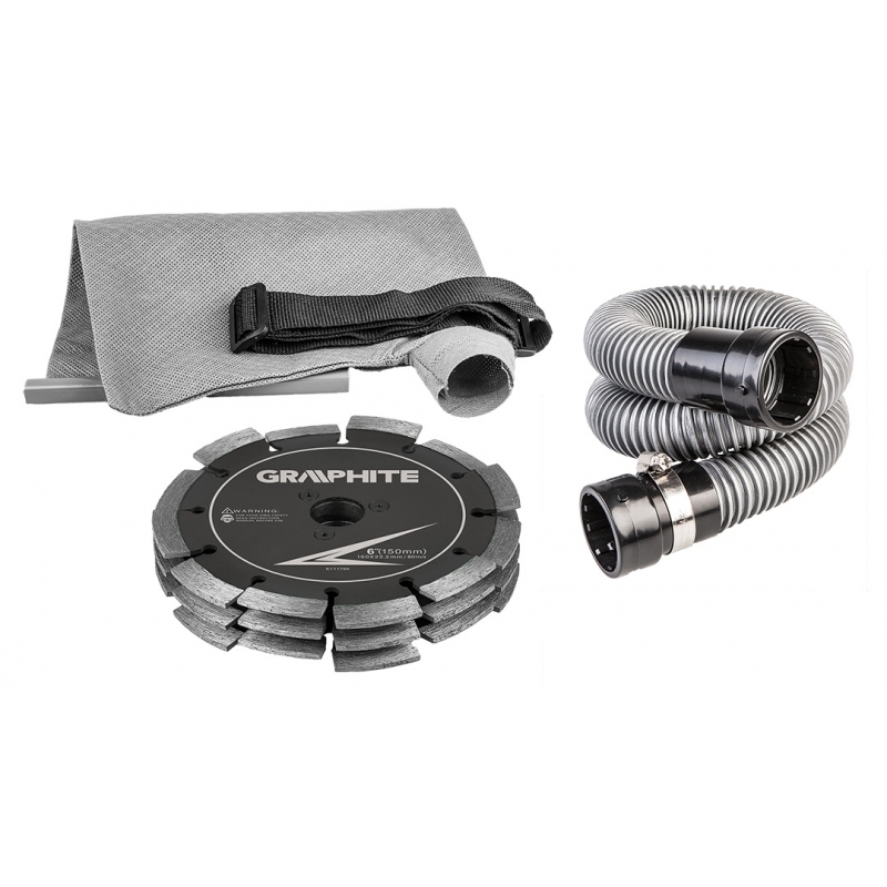 Bruzdownica 2400W, 3 tarcze zespolone 150x22.2 mm, obroty 8000 min⁻1, szerokość bruzdy 30 mm, maksymalna głębość bruzdy 43mm, masa 6.6 kg, akcesoria: 2 klucze, wąż zintegrowany z workiem na pył, walizka