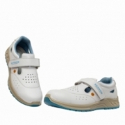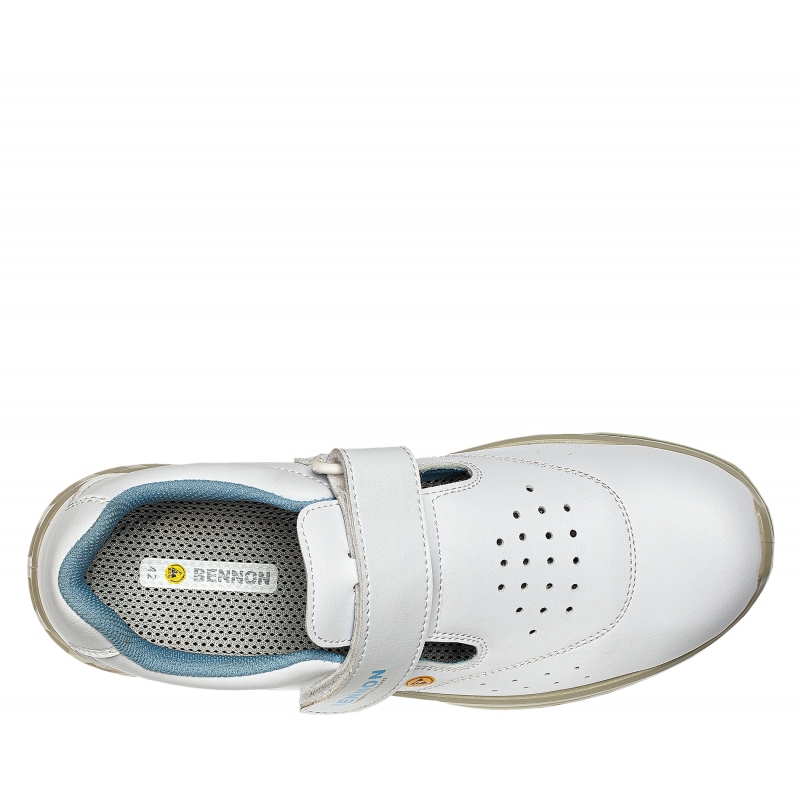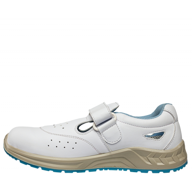 Białe, łatwo zmywalne, antystatyczne buty z właściwościami ESD. Dla większego komfortu podczas długotrwałego noszenia buty te posiadają: absorbcję energii w części piętowej wkładkę z węglem aktywnym (wchłania pot i niweluje nieprzyjemny zapach) perforowaną cholewkę zapewniającą lepszą przepuszczalność powietrza Dla większego bezpieczeństwa, czyli stabilności w pracy, buty wyposażono w podeszwę o właściwościach antypoślizgowych SRC. Szybkie i łatwe zapinanie butów umożliwia rzep. Buty nadają się do suchych środowisk zewnętrznych i wewnętrznych. Zalecane zastosowanie: opieka zdrowotna, apteki, hotelarstwo, przemysł spożywczy, stołówki, strefy EPA itp.