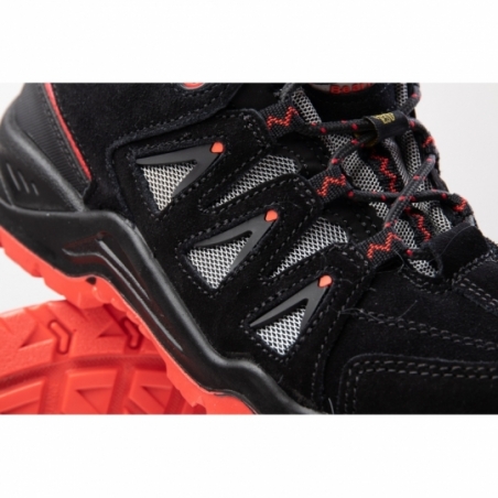 Kompozytowy podnosek oraz kevlarowa wkładka antyprzebiciowa chronią stopę przed uderzeniem i przekłuciem. Podeszwa PU/PU oferuje odporność na oleje i węglowodory oraz właściwości antypoślizgowe SRC. Model spełnia wymagania ESD.