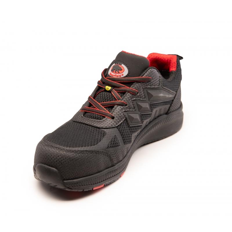 PÓŁBUT POLSTAR BEARFIELD BRISTOL S1PS SR FO ESD (CZARNY)Półbuty ochronne Bearfield Bristol to metal‑free model kategorii S1PS, zaprojektowany dla użytkowników wymagających ochrony przed uderzeniem, przekłuciem oraz rozpraszania ładunków elektrostatycznych. Cholewka wykonana jest z wytrzymałej tkaniny poliestrowej, a miękki język zwiększa komfort noszenia. Model wyposażono w kompozytowy podnosek oraz kevlarową wkładkę antyprzebiciową, higroskopijną wyściółkę i wymienną wkładkę premium. Podeszwa EVA/guma zapewnia właściwości ESD, absorpcję energii pięty oraz antypoślizgowość (SR) i odporność na olej (FO).