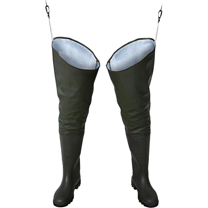 Wodery Standard. - wodoochronna, wytrzymała tkanina Plavitex Heavy Duty - gramatura 680 g/m2 - wgrzane na stałe wysokiej jakości kalosze - w szczególności do użytku przy wszelkich pracach rybackich - wytrzymałe szwy zgrzewane obustronnie