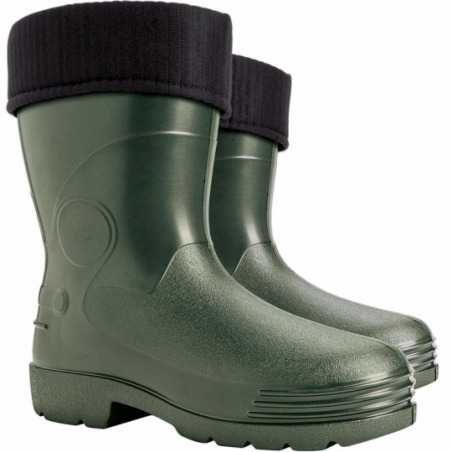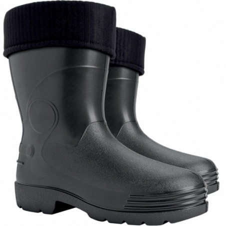 Buty męskie typu kalosz. - wykonane z tworzywa EVA - buty krótkie sięgające do połowy łydki - wyposażone w wymienną wkładkę ocieplającą - dzięki właściwościom termoizolacyjnym tworzywa, chronią stopę przed wilgocią oraz przed zimnem - doskonałe do prac na działce lub w gospodarstwie domowym - kategoria OB E