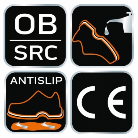 Kalosze robocze OB FO SRC, rozmiar 40, PVC, podszewka z dzianiny poliamidowej, antypoślizgowa podeszwa odporna na oleje (FO), zabudowana pięta, SRC- odporność na poślizg na podłożu ceramicznym pokrytym roztworem laurylosiarczanu sodu (SLS) i na podłożu ze stali pokrytym glicerolem), zgodność z normą EN20347
