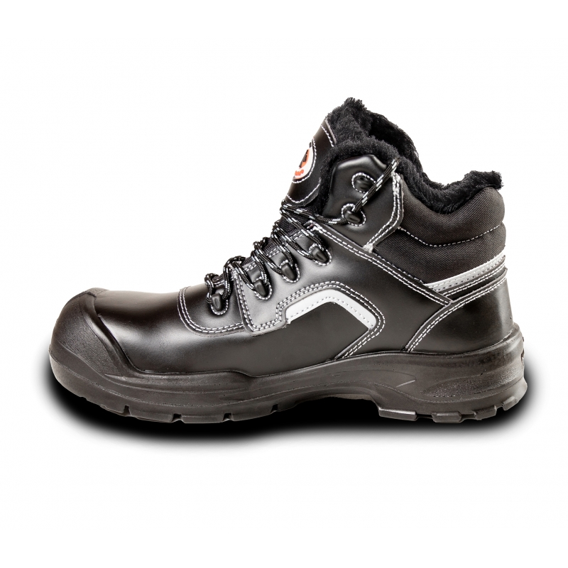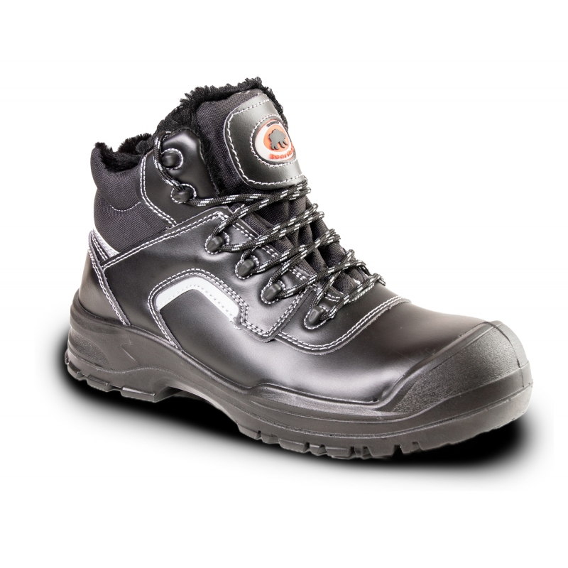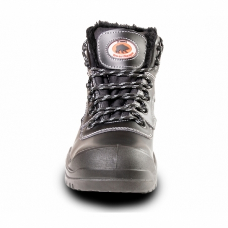Ocieplane trzewiki Bearfield R02 to solidne obuwie ochronne za kostkę, wykonane ze skóry licowej o grubości 1,6–1,8 mm. Model wyposażony jest w kompozytowy, szeroki podnosek oraz kevlarową wkładkę antyprzebiciową, zapewniającą ochronę przed przekłuciem do 1100 N.
