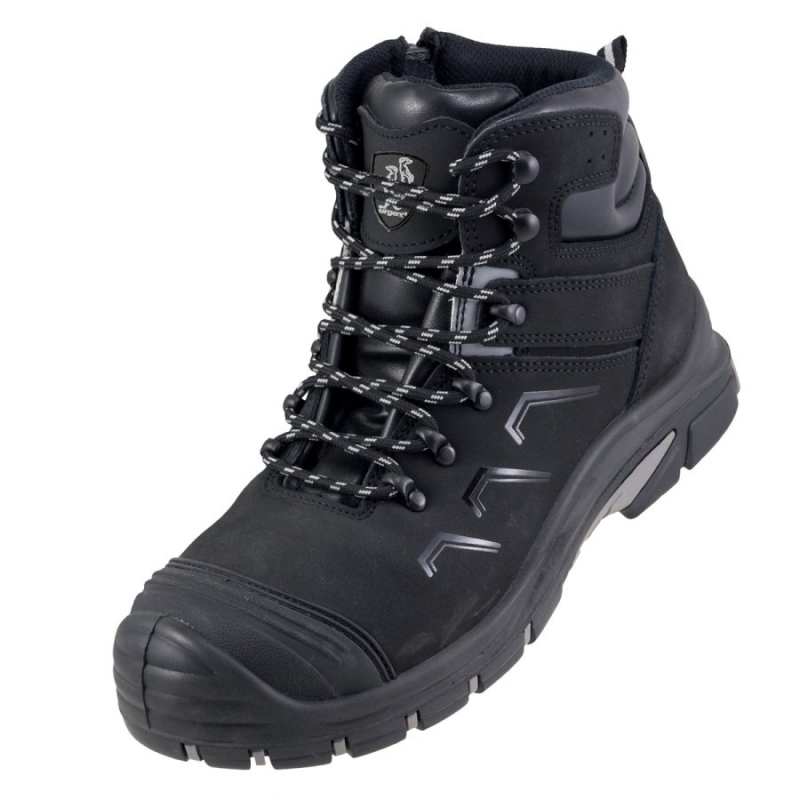 - Właściwości ochronne — zamknięty obszar pięty; antyelektrostatyczne; absorpcja energii; odporność na przebicie; przepuszczalność i absorpcja wody