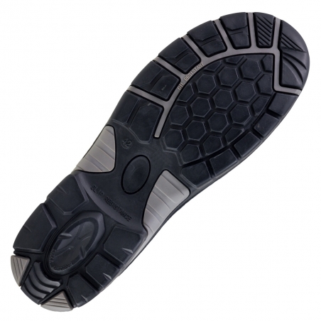- Podeszwa zewnętrzna — guma; odporna na poślizg, olej napędowy i kontakt z gorącym podłożem (HRO)