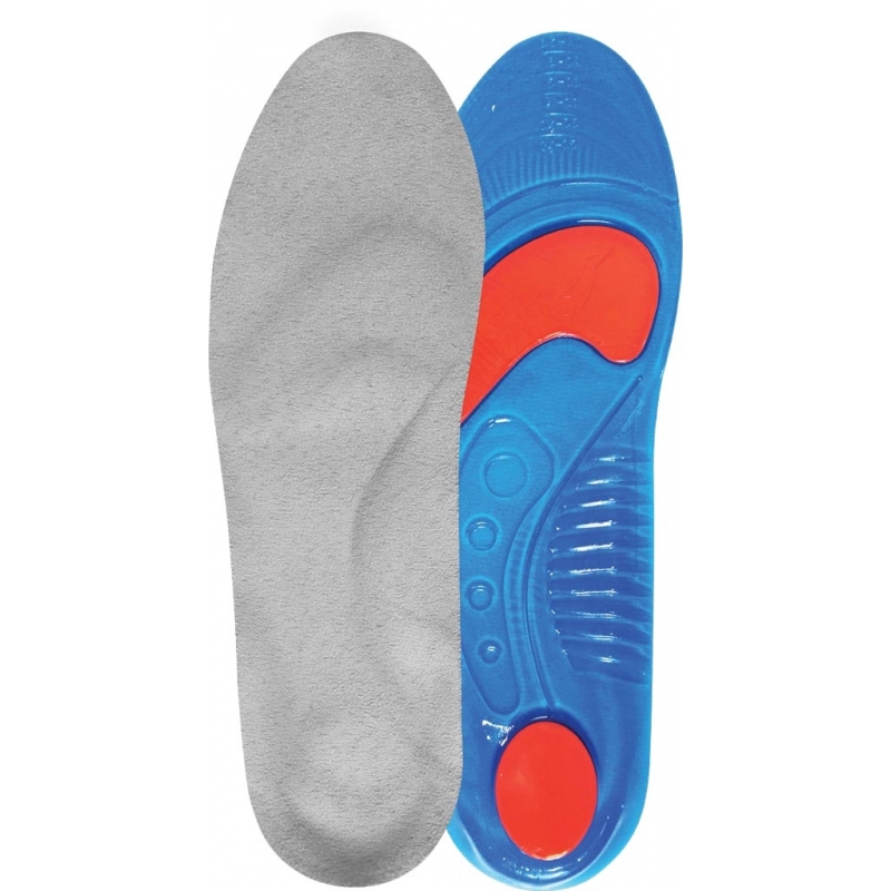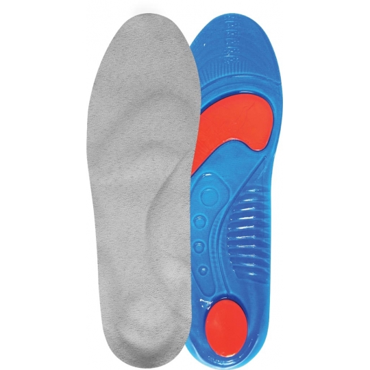 Wkładka do butów żelowa. - posiada welurową wyściółkę wierzchnią - wykonana ze sprężystego żelu o dwóch gestościach - absorbuje wstrząsy powstałe podczas chodzenia i biegania - redukuje bóle stóp, kolan i kręgosłupa - podnosi komfort chodzenia i daje uczucie relaksu - zapewnia komfort pracy - amortyzuje wstrząsy - dla osób o stopach wrażliwych, z nadwagą oraz wykonujących pracę stojącą - może być prana ręcznie w temperaturze 30 stopni, - dwa rozmiary: damski i męski – do przycinania.